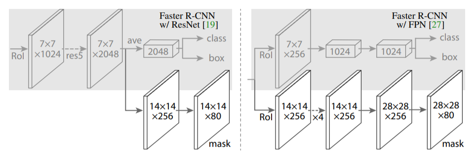 Mask branch는 각 RoI(Region of Interst)에 적용되며, pixel-to-pixel 방식으로 segmentation mask를 예측한다.