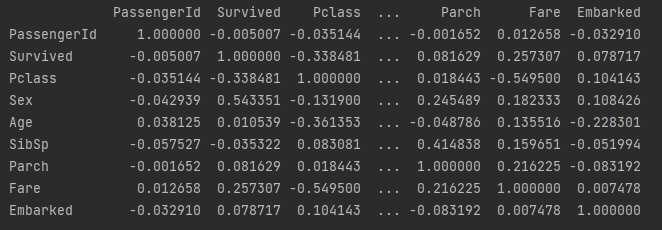 PassengerId는 거의 영향을 주지 않는 것을 알 수 있다.